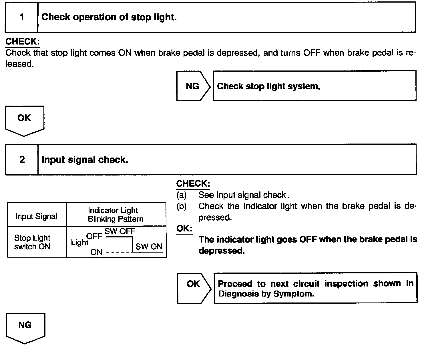 When the brake pedal is depressed, the stop light switch sends a signal to the ECU. When the ECU receives this signal, it cancels the cruise control.