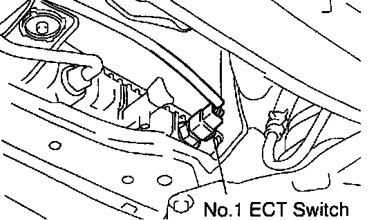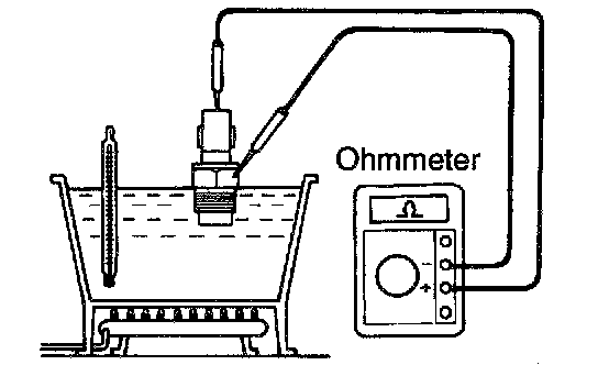 1. Using an ohmmeter, check that there is no continuity between the terminals when the coolant temperature is above 98°C (208°F). If there is continuity, replace the switch.