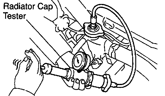 a. Fill the radiator with coolant and attach a radiator cap tester.