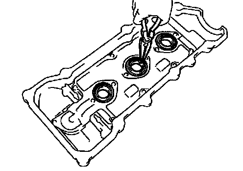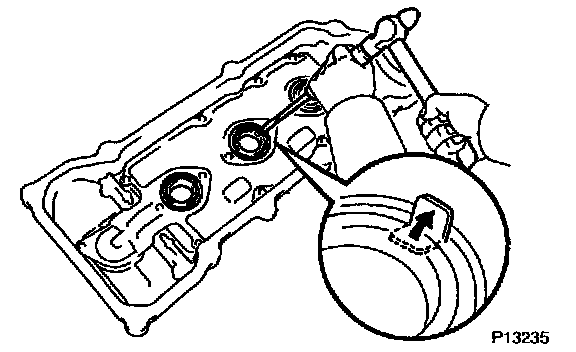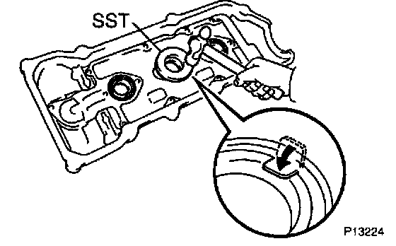 d. Using SST and a hammer, tap in a new gasket until its surface is flush with the upper edge of the cylinder head cover.