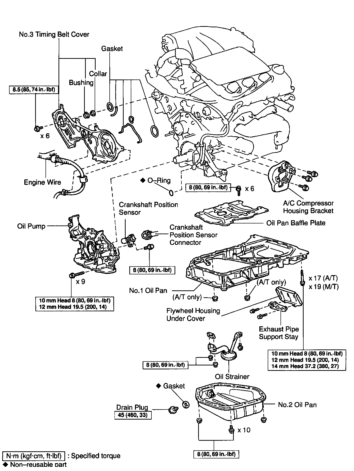 - Be careful not to the damage the No. 2 oil pan contact surface of the No. 1 oil pan.