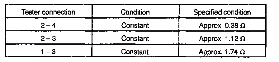 Measure resistance between terminals as shown in the chart.