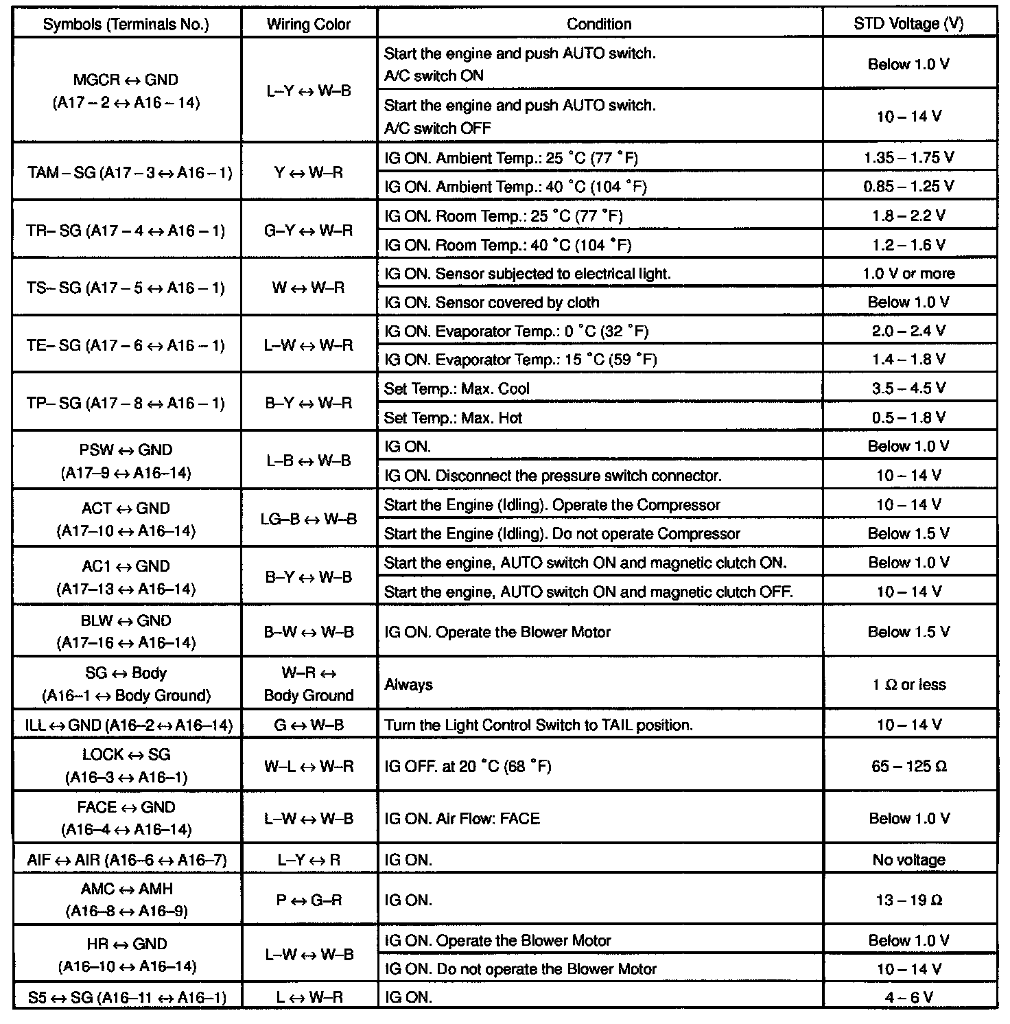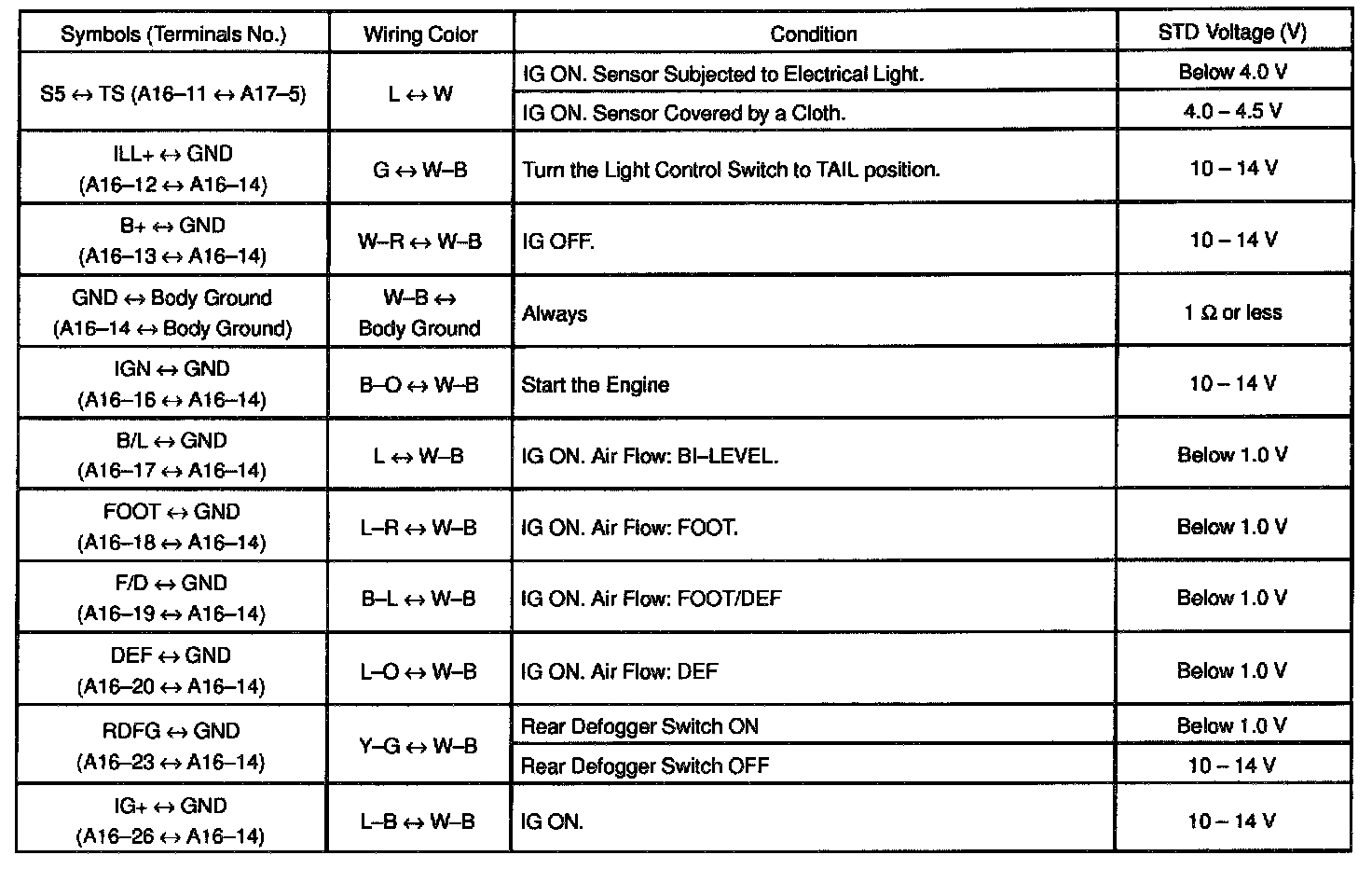 Pinout Values and Diagnostic Parameters