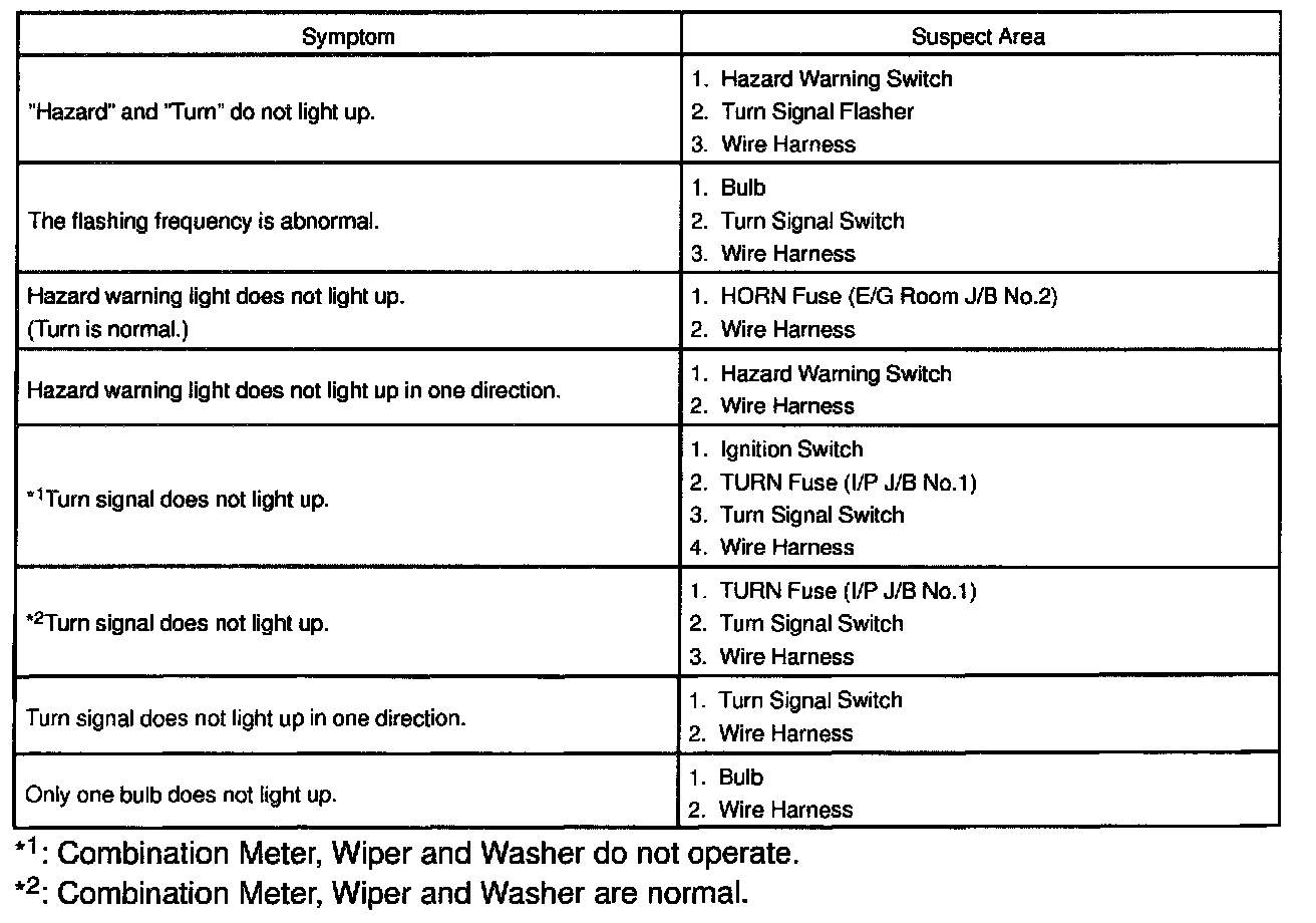 Problem Symptoms Table - Turn Signal And Hazard Warning System: