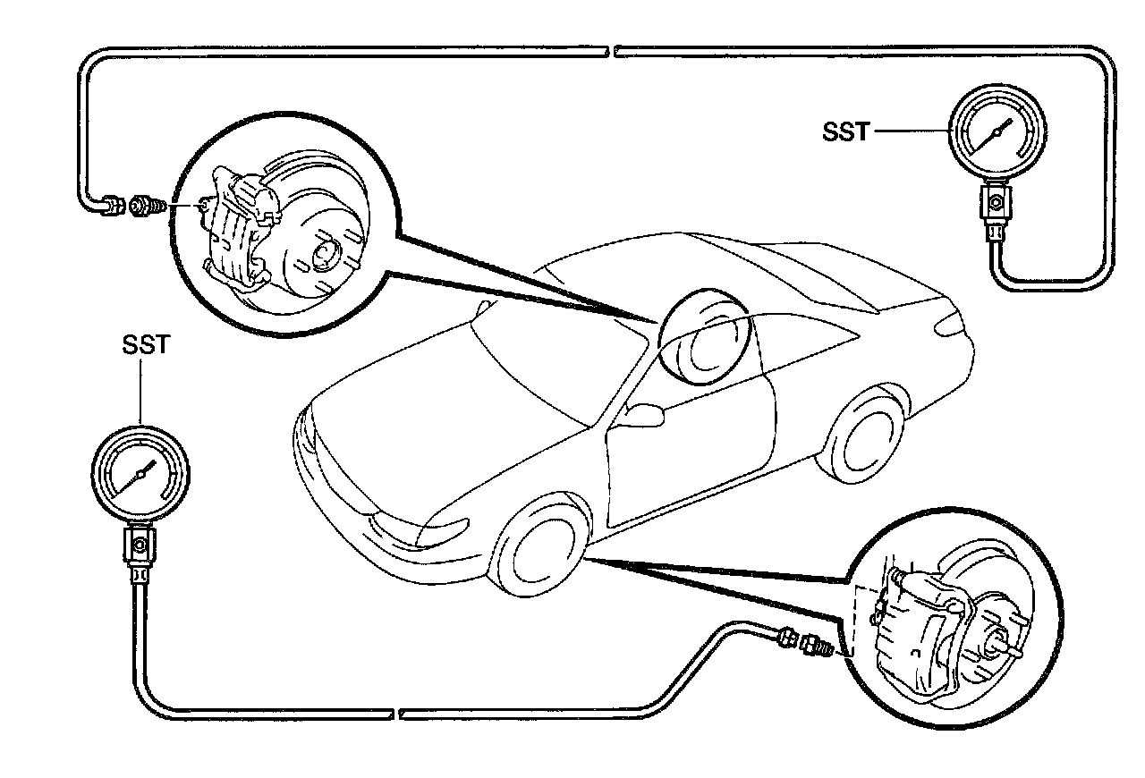 4. REMOVE LSPV GAUGE (SST) AND BLEED BRAKE SYSTEM