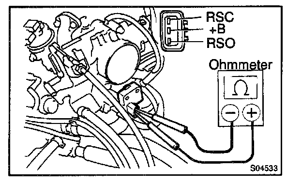 b. Using an ohmmeter, measure the resistance between terminal +B and other terminals (RSC, RSO).