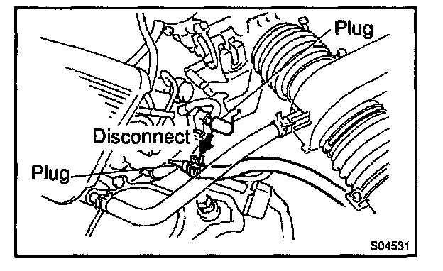 e. Disconnect the air assist hose from the air pipe, and block off the IAC valve exit and the entry to the pipe.