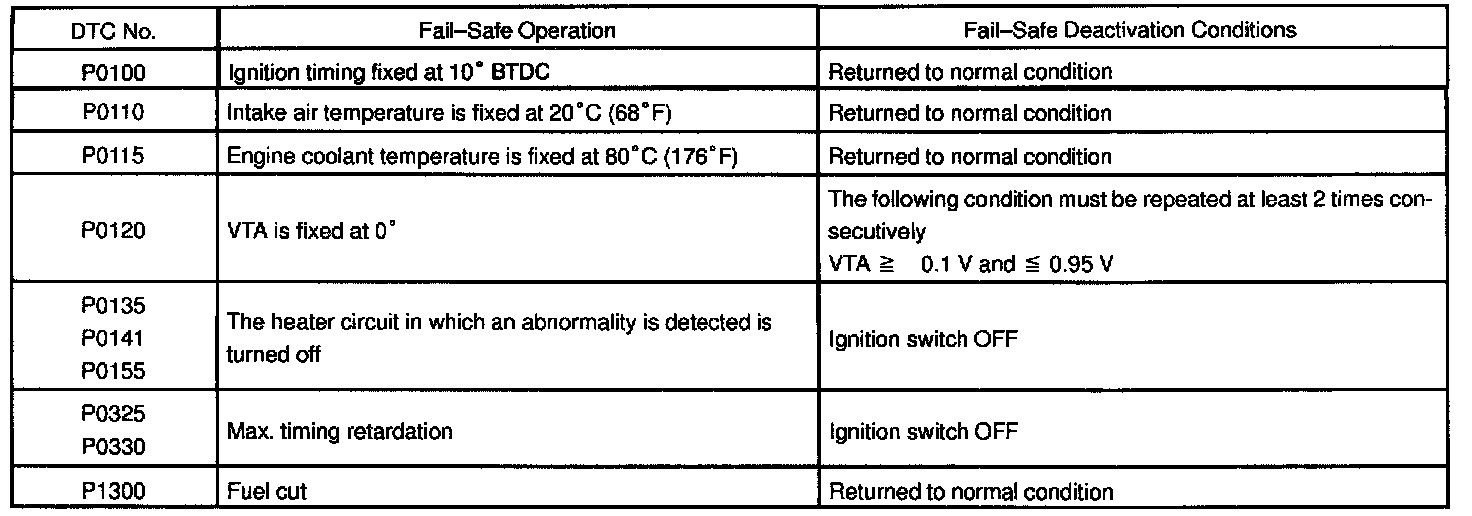 If any of the codes shown is recorded, the