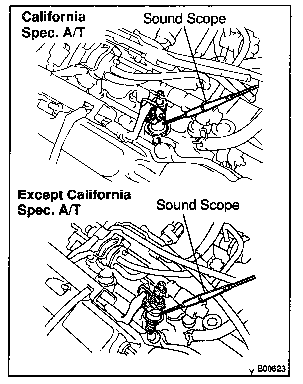 b. Use a sound scope to check for injector operating noise.