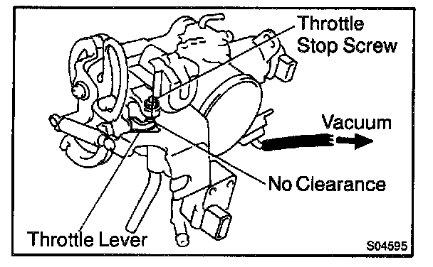 b. Check that there is no clearance between the throttle stop screw and throttle lever when the throttle valve is fully closed.