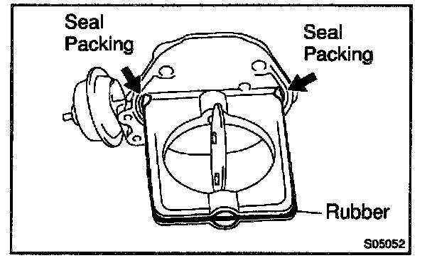 c. Apply seal packing to the positions of the intake air control valve shown in the illustration.