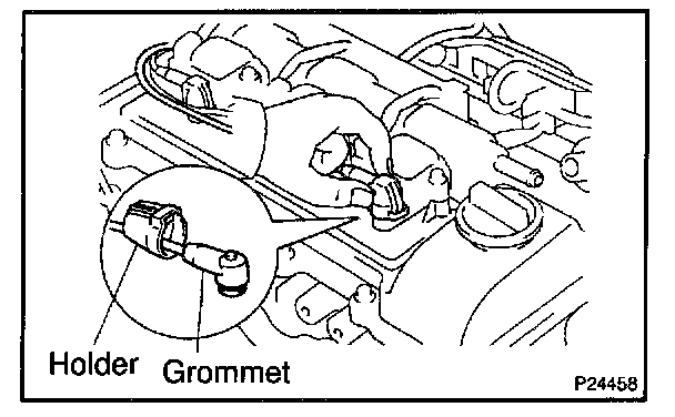 NOTE: Check that the holder is correctly installed to the grommet and ignition coil as shown in the illustration.