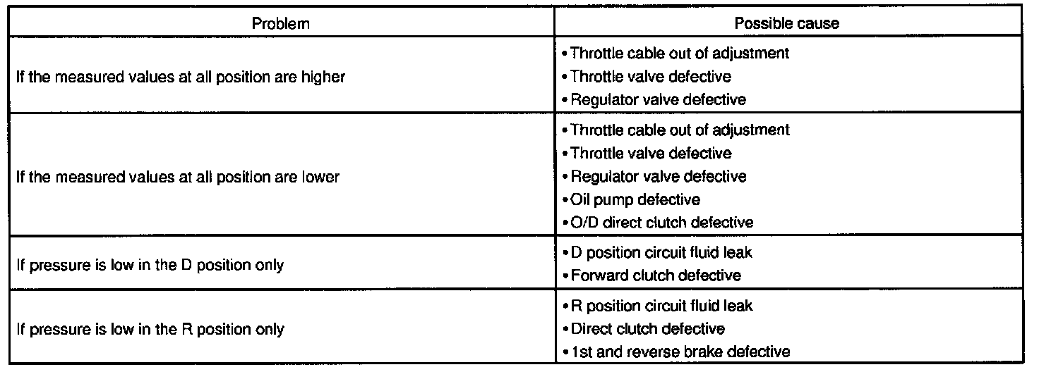 8. Depress the accelerator pedal all the way down. Quickly read the highest line pressure when the engine speed reaches the stall speed.