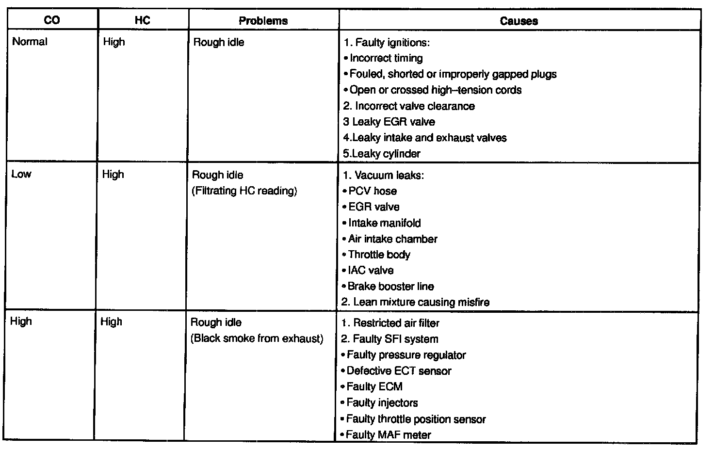 If the CO/HC concentration dose not comply with regulations, troubleshoot in the order given.