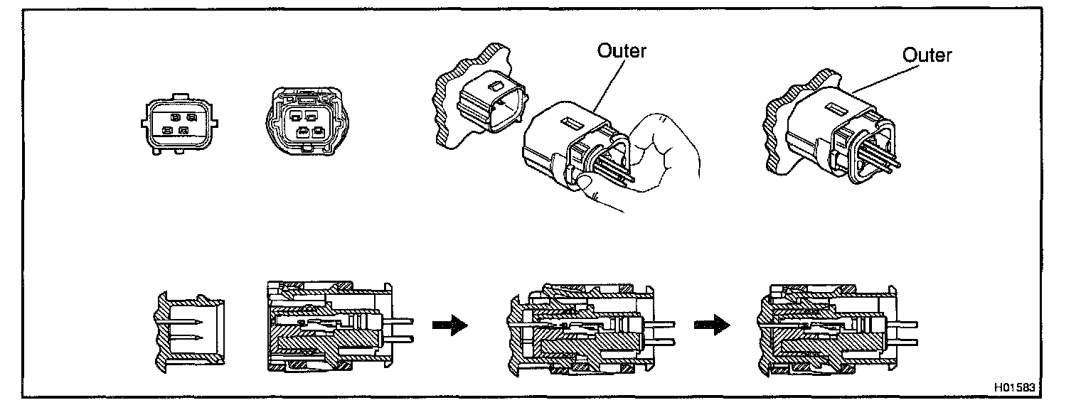 b. As they are fitted in, the outer slides rearward. Press it until the outer returns to its original position again.
