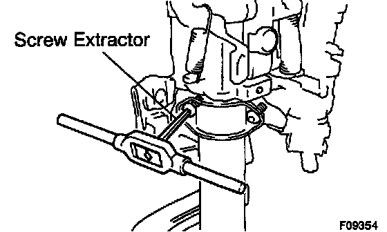 c. Using a screw extractor, remove the 2 bolts, column up per bracket and column upper clamp.