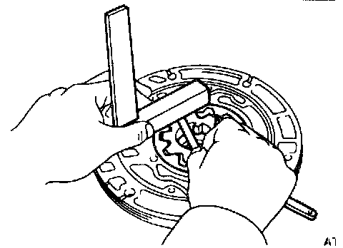 Using a steel straightedge and feeler gauge, measure the side clearance of both gears.