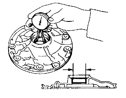 Using a dial indicator, measure the inside diameter of the oil pump body bushing.