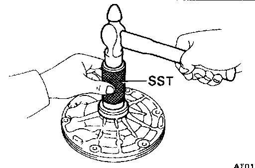 Using SST and a hammer, install a new oil seal. The seal end should be flush with the outer edge of the pump body.