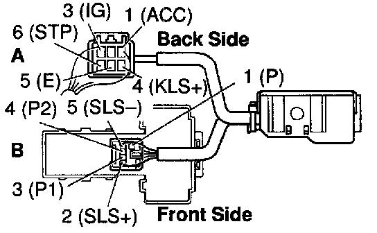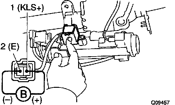 c. Apply battery positive voltage between terminals. Check that an operation noise can be heard from the solenoid.