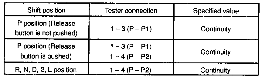 4. INSPECT SHIFT LOCK CONTROL SWITCH