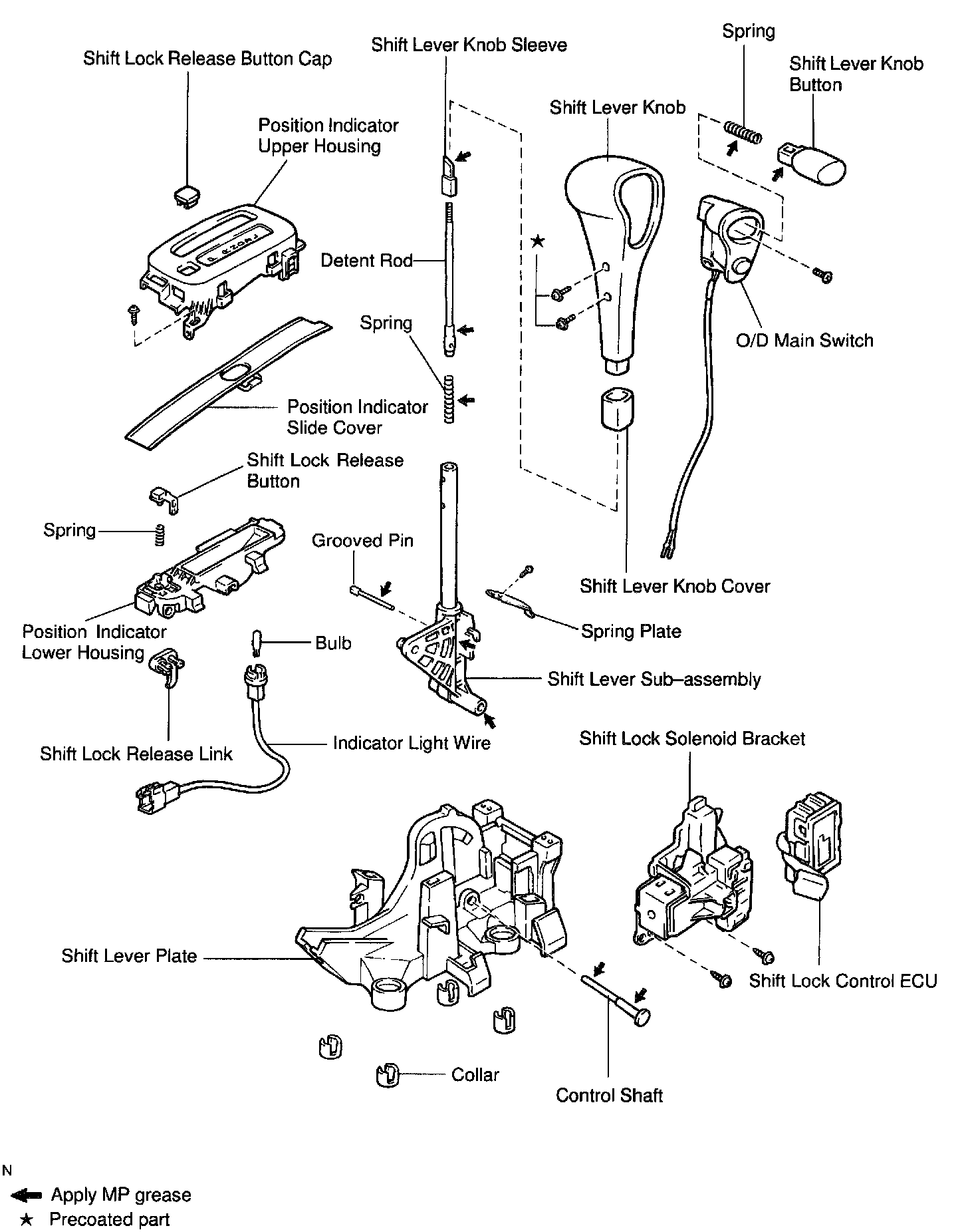 c. Apply MP grease to shift lever knob button.