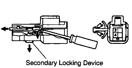 c. Release the locking lug of the terminals 2 and 4, and pull the terminals out from the rear.