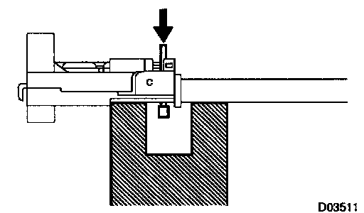 NOTICE: When pressing down the grooved pin, if doing it at the place other than the notch, there may be fear of damaging the shift lever sub-assembly.