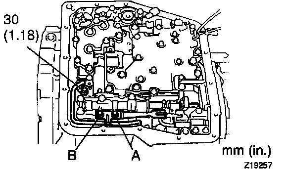 b. Check that the manual valve lever is touching the center of the detent spring tip roller.