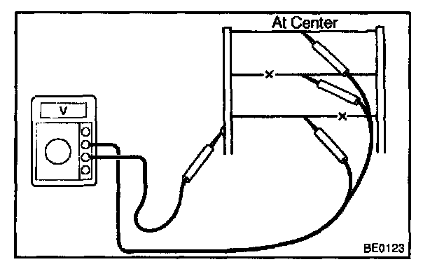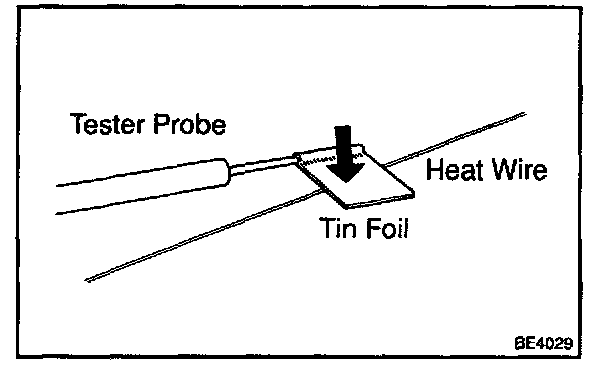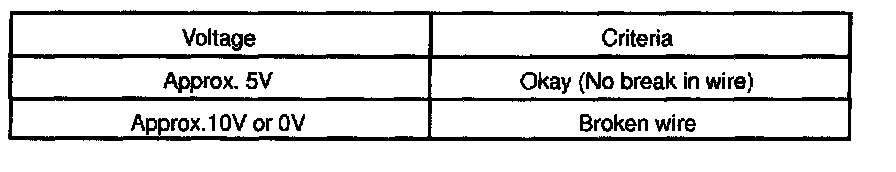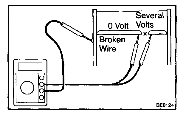 HINT: If the heat wire is not broken, the voltmeter indicates 0 V at the positive (+) end of the heat wire but gradually increases to about 12 V as the meter probe is moved to the other end.