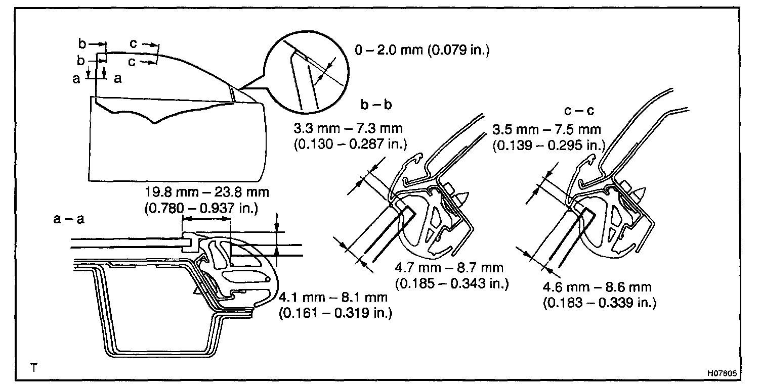 1. When you close the door with the glass fully closed, the b-b, c-c sections are in the same condition as shown in the illustration.