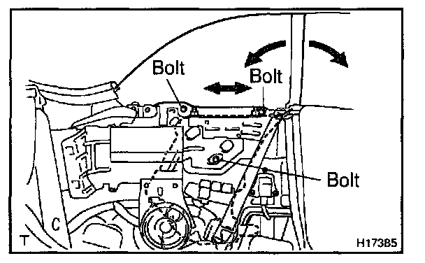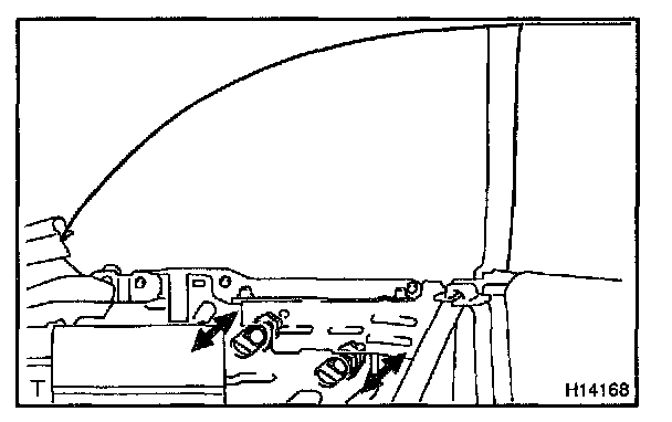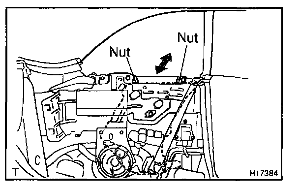Adjust the quarter window by loosening the 2 nuts and moving quarter window guide in or out.