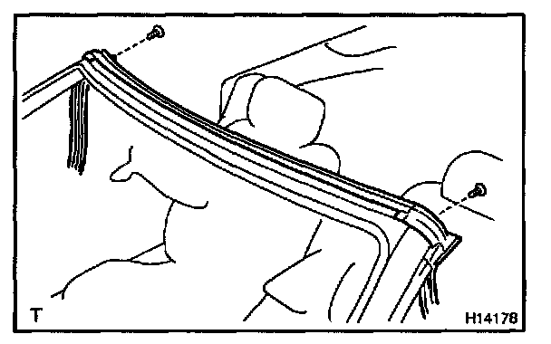 a. Remove the 5 screws and roof side drip moulding weatherstrip.