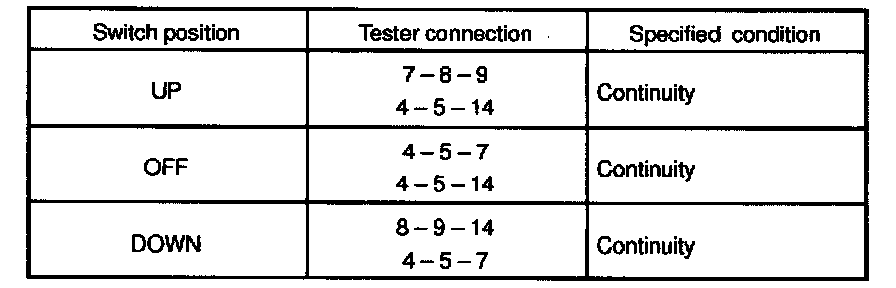 INSPECT POWER WINDOW SWITCH CONTINUITY