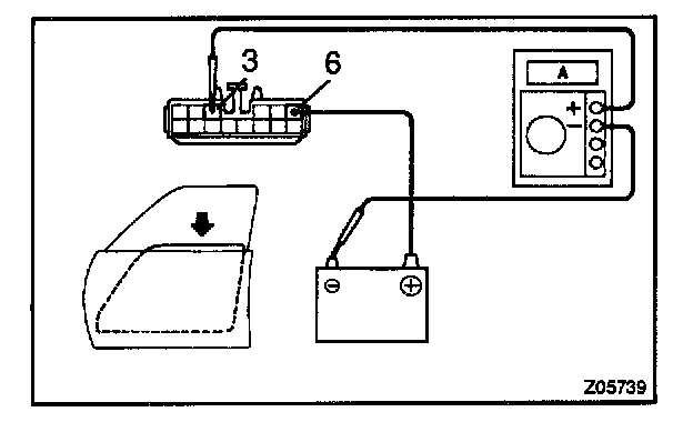b. Connect the positive (+) lead from the ammeter to terminal 3 on the wire harness side connector and the negative (-) lead to negative terminal of the battery.