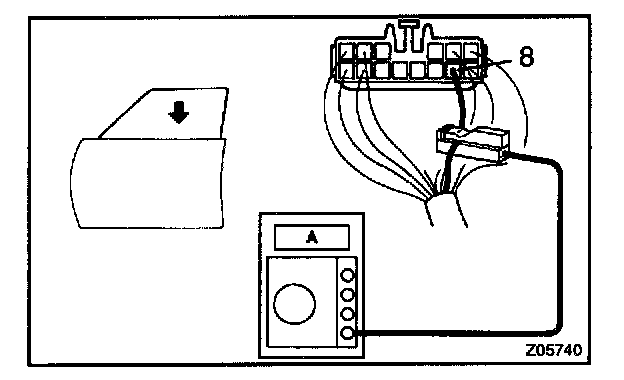 b. Attach a current-measuring probe to terminal 8 of the wire harness.
