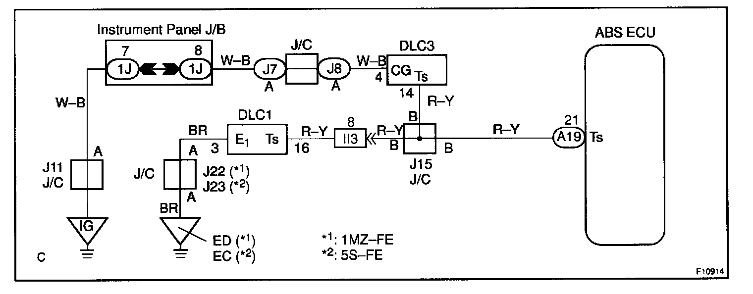Connecting terminals Ts and E1 of the DLC1 or Ts and CG of the DLC3 starts the check.