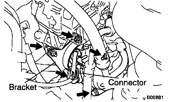 Remove the 4 bolts, the mounting insulator and bracket assembly.