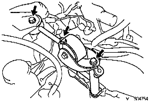 Remove the 3 bolts and RH engine mounting stay.