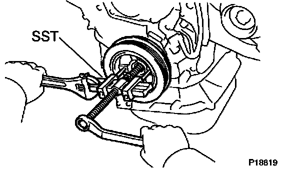 a. Using SST, remove the pulley bolt.