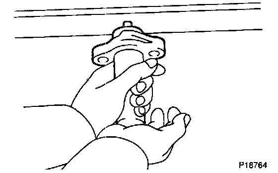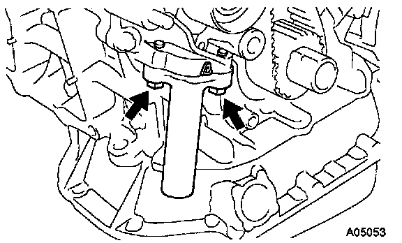 b. Hold the tensioner with both hands and push the push rod strongly as shown to Check that it doesn't move.