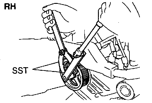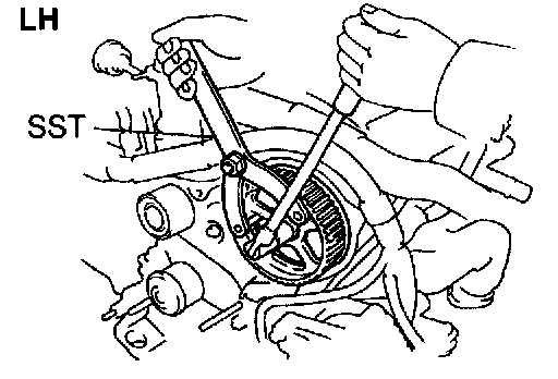 b. Using SST, remove the LH timing pulley.