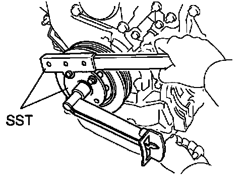 b. Using SST, remove the crankshaft timing pulley.