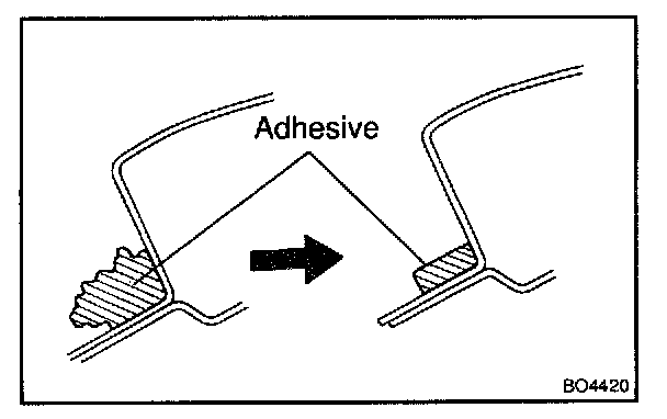 b. Cut off the old adhesive around the stopper installation area.