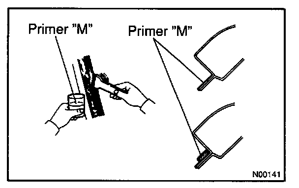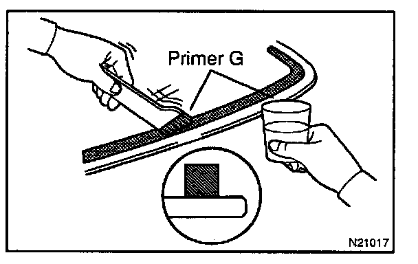 a. Using a brush or a sponge, coat the edge of the glass and the contact surface with Primer G.