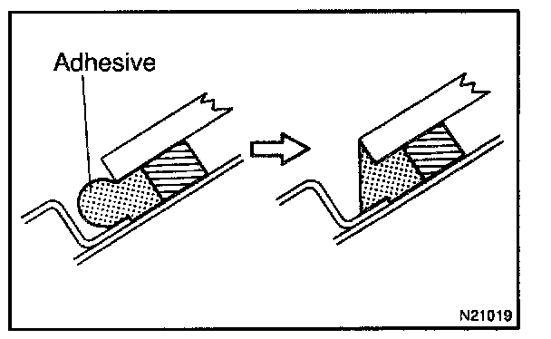 Sealant may cause the moulding to stick to the glass. If necessary, separate from the glass using a knife.