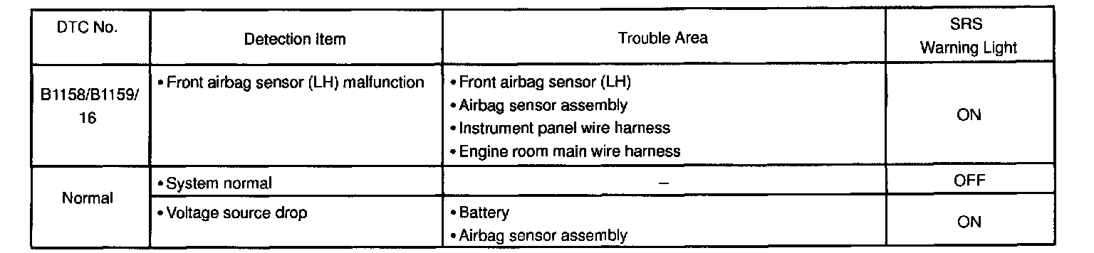 - If a code not listed on the chart is displayed, the airbag sensor assembly is faulty.