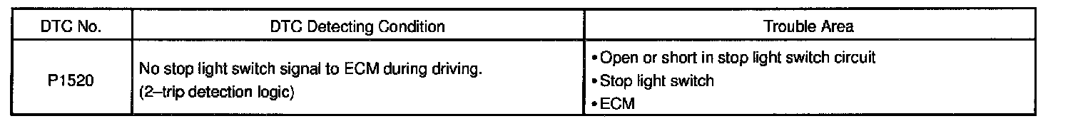 When the brake pedal is operated, this switch sends a signals to ECM. Then the ECM cancels operation of the lock-up clutch while braking is in progress.