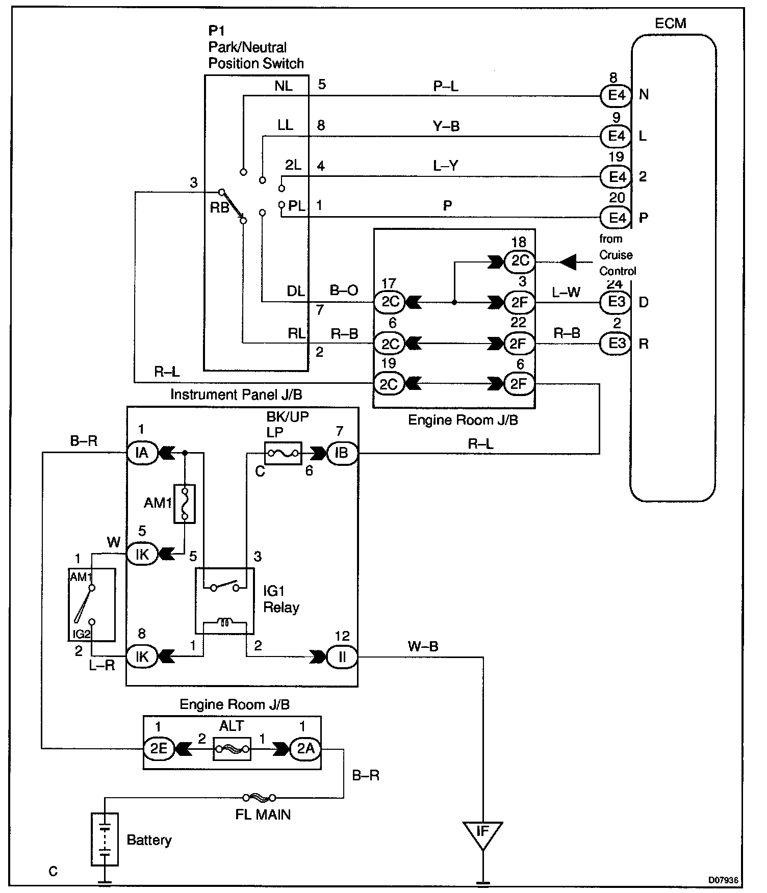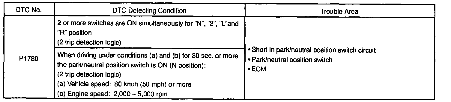 P1780 - Park/Neutral Position Switch Malfunction (Only For A/T)CIRCUIT DESCRIPTION