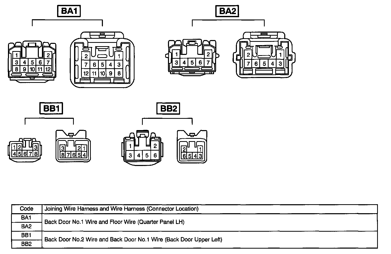 Under Hood Wire Harness To Wire Harness Connectors (BA1 - BB2):
